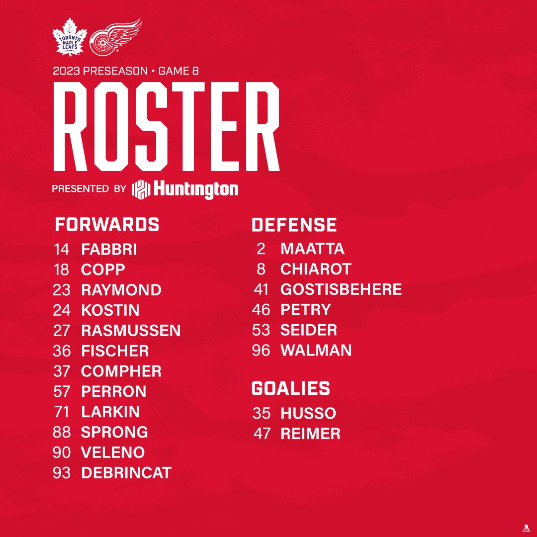 Honestly, I’m hoping for one more chance for some of the fringe guys to impress us all after yesterday’s roster trimming. Whether they’re on the cusp of making the team or on the cusp of missing the team, I want big games. Danielson, Kasper, Berggren, Söderblom, Edvinsson, Lyon & Reimer, Veleno… If it were me, I’d be placing these guys on the ice with some guys for sure making the roster like Larkin and Seider and the rest of our top talent and telling them to go absolutely wild. I want obvious reasons for Yzerman to make hard decisions (and maybe a trade or two).